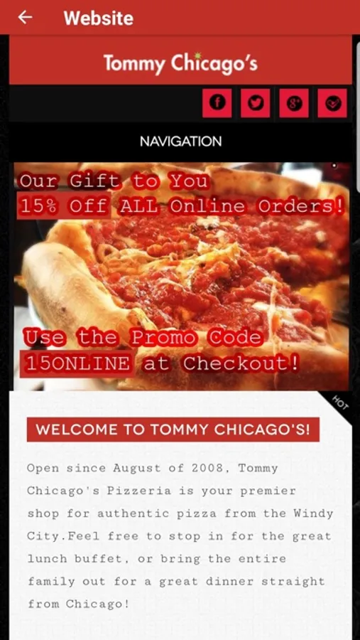 Tommy Chicago's is a locally owned and operated pizzeria serving Chicago deep dish style pizza. There is a large selection of toppings to please even the most creative pizza connoisseur. In addition to the deep dish pizzas, there are thin crust pizzas, sandwiches, and salads that will be sure to fill everyone's appetite.