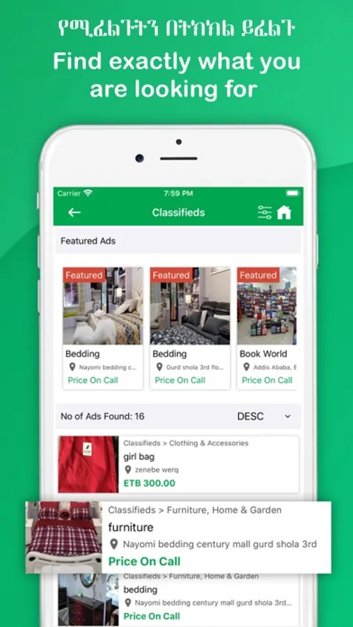 Download the number one classifieds app in Ethiopia to buy, sell, and find anything online.