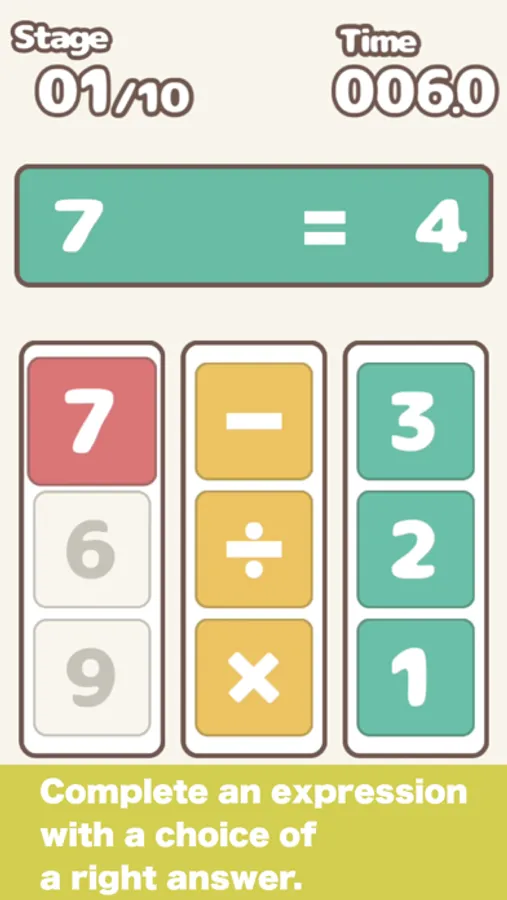 You must complete an expression with a choice of three numbers and marks.