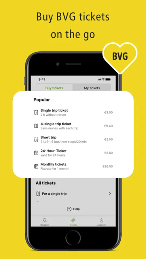 - Convenient purchase of public transport tickets (bus, tram, S Bahn, U Bahn)