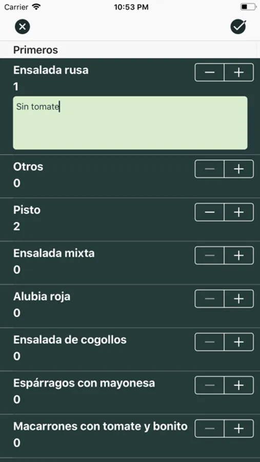 - Introduce comandas desde la app.