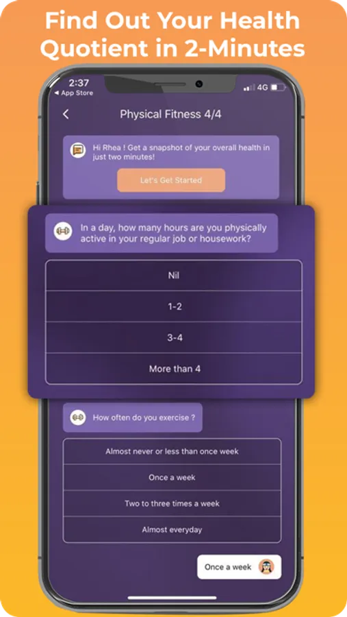 • Suggests exciting and motivating health and fitness regimens based on health assessment & helps you build long-lasting healthy habits.