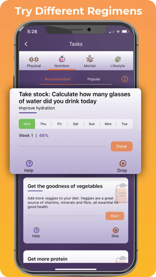 Daily Tasks: Get recommended daily tasks based on your assessment & start building healthy habits.