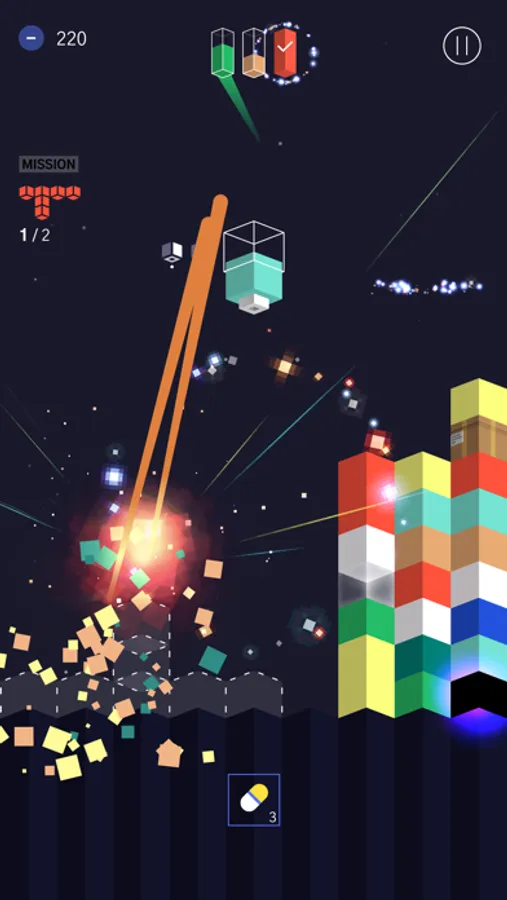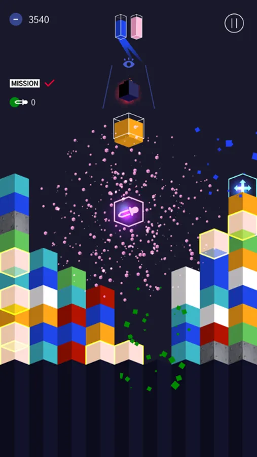 Colornoid is a game where players complete levels by moving colored cubes falling from the top of the screen to make a match of three or more of the same color.