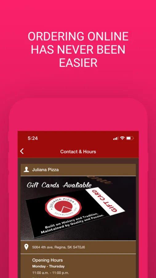 Order online, access daily specials, stay connected with push notifications and much more. This is probably the easiest way to order your favorite pizza. Download now and keep in touch with this legendary Regina institution. There's a reason why Juliana has been around for over 50 years so find out why for yourself.
