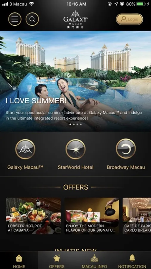 • View your hotel reservations at these GEG flagship destinations in Macau: Galaxy Macau™, Broadway Macau™ and StarWorld Hotel