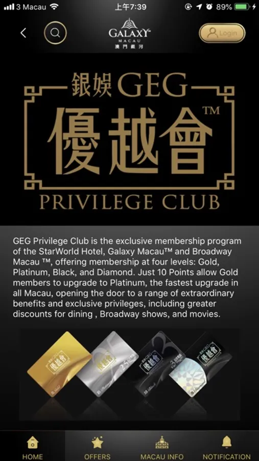 Brought to you by Galaxy Entertainment Group (GEG), “My Privilege” is an official mobile app that offers GEG Privilege Club (GPC) members and all visitors essential information and services, from member account balances to hotel booking information.