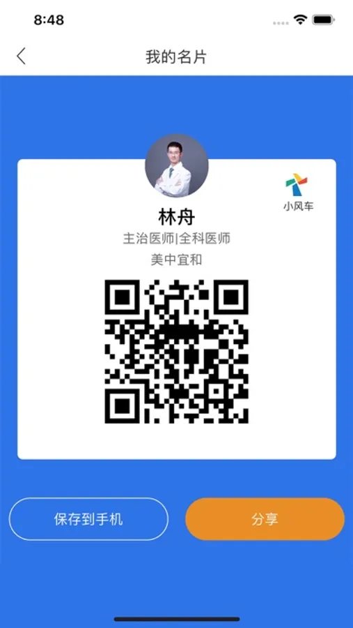 5、我的名片:我的医生码,医生可进行分享和保存到系统相册