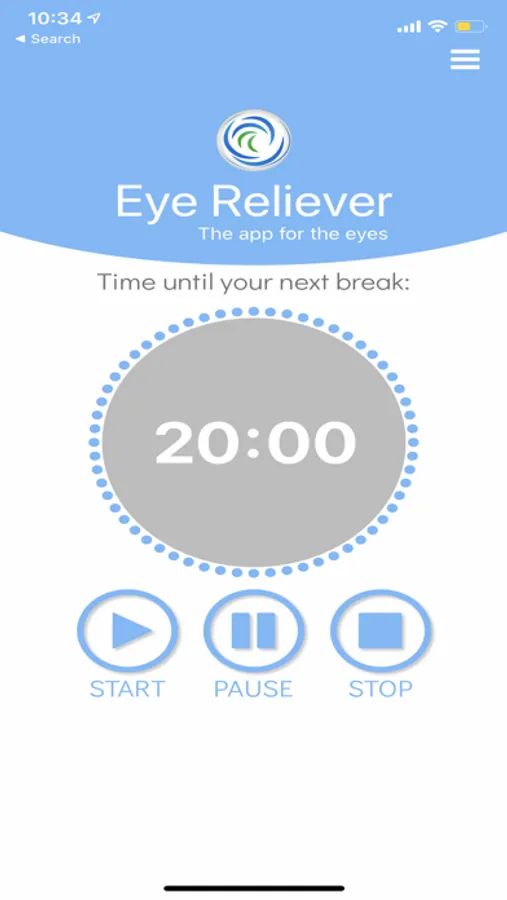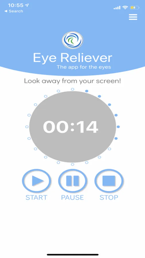 Unfortunately, the truth is that it's difficult to remember to take these regular breaks. We invariably become engrossed in what we are doing, whether it's checking e-mail, texting, writing reports, or playing a game. That's where the Eye Reliever app provides an easy solution. This app has a custom-made looping clock that will track the time for you! Just hit the Start button and listen for the alerts. The app will tell you when to take a break with a brief alert sound, and then 20 seconds later another alert lets you know when the break is over. It's that simple!