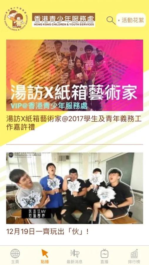本程式會為大家帶來各種由香港青少年服務處製作的精彩影片節目,包括