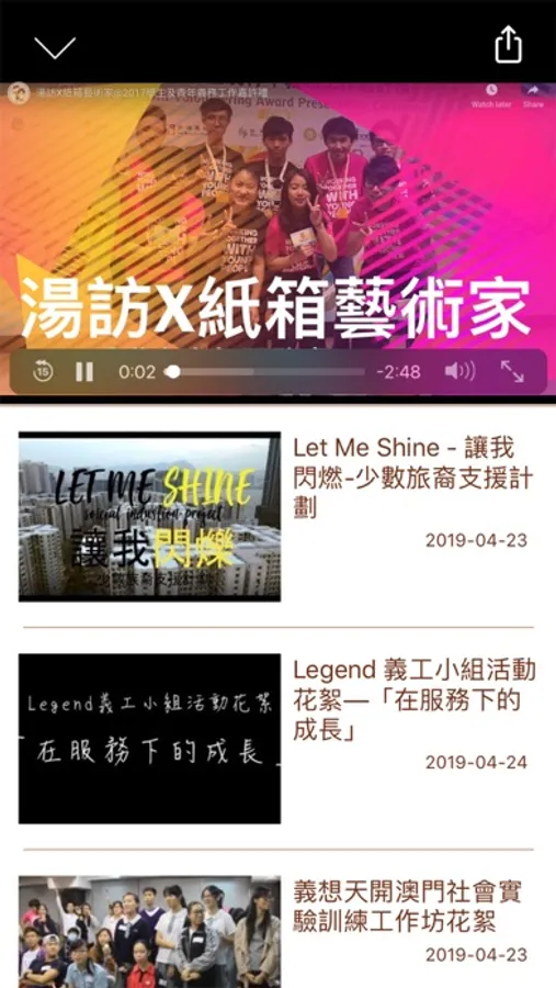 1. 提供生活分享、活動花絮、活動推廣、表演、青年特輯等點播影片;