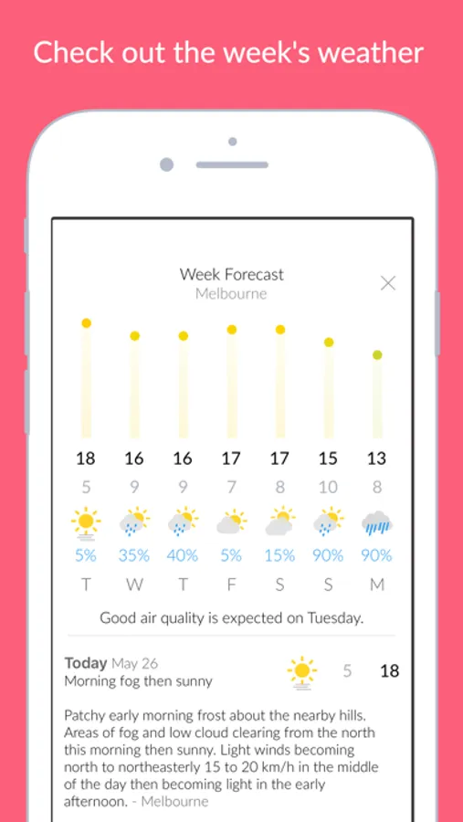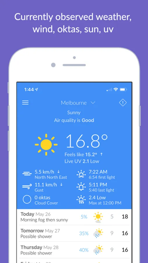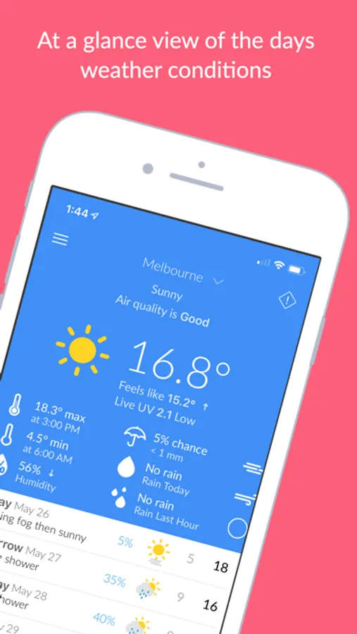 If you want a simple daily weather app, with the essential accurate data at a quick glance, this app is for you.