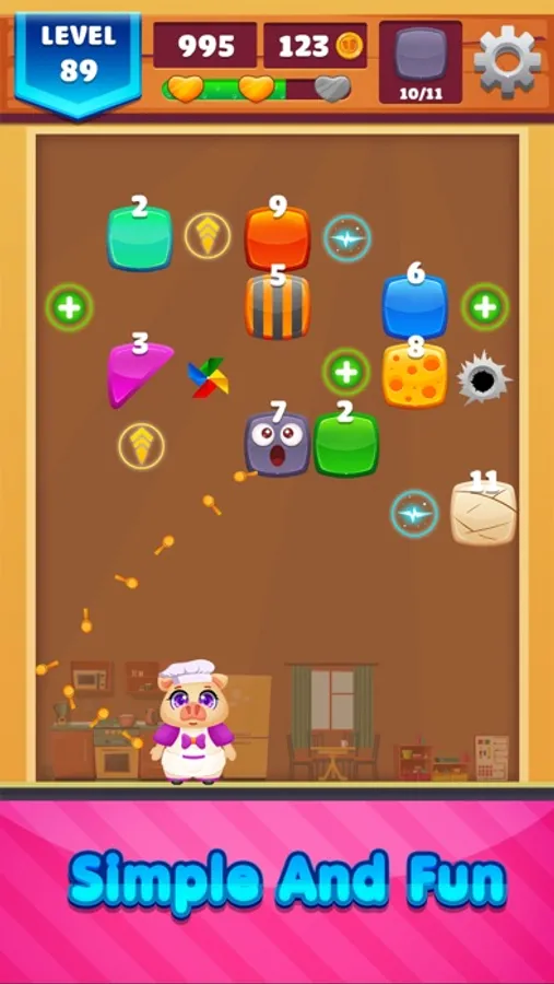 Impressive, user-friendly interface, easy-to-use features combining beautiful graphics, realistic sound effects, Piggy gives you an extremely lively and inspiring playing space, forget the boring breaks, instead, you will have relaxing moments with the brick breaker game: Piggy.