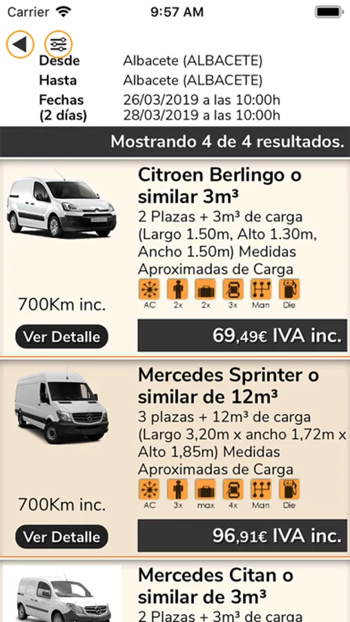 Buscar los mejores precios de alquiler de furgonetas, camiones, minivans, turismos de 7 y 9 plazas y turismos habituales.