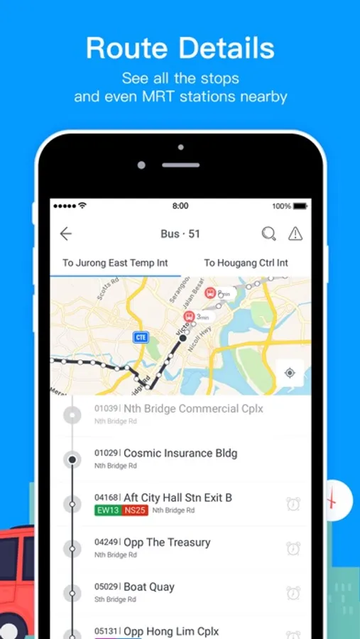 Show bus stops, bus routes, bus arrival timings and more. Search function for buses and bus stops. Set an alarm to know when to get off too.