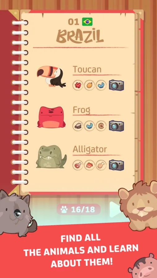 - Discover 15 different animals and cook for them. Take pictures and collect them!