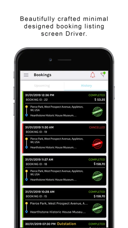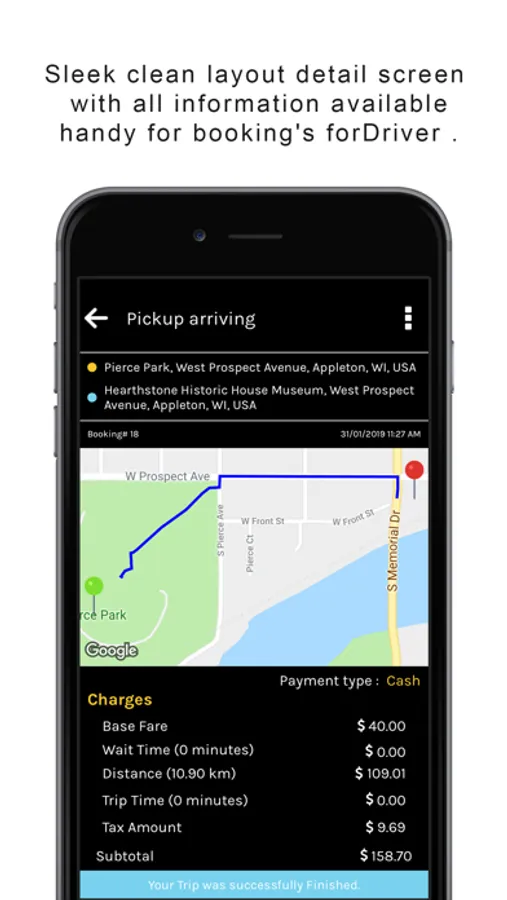 Driver and Rider's Transaction history - Both Driver's App & Rider's App can see their transaction history and prev. rides along with their invoices , detail of their routes on map along with amount , distance etc. all laid out beautifully .