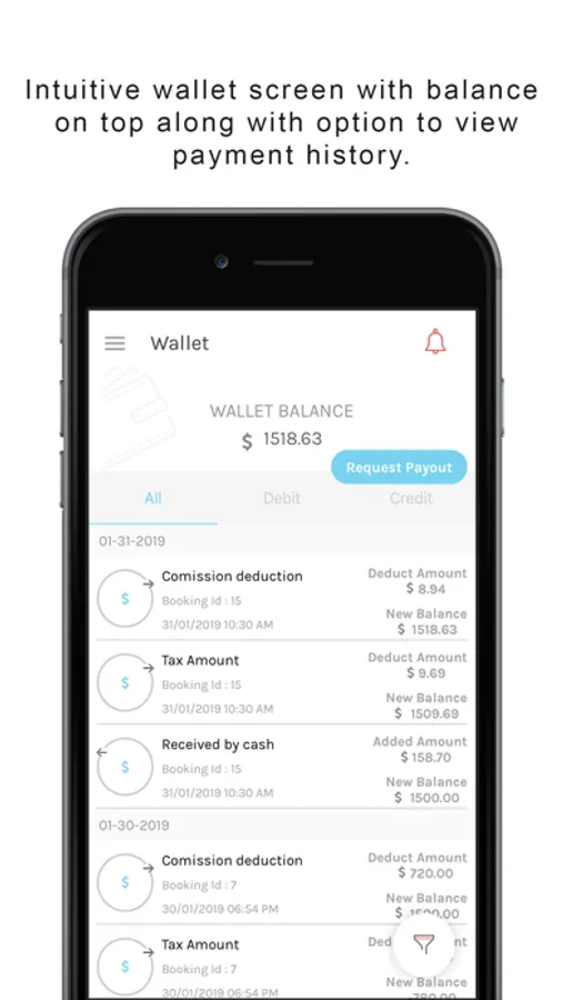 Driver's can request Payouts from Wallet balance and request to be send to Admin for settlement's .
