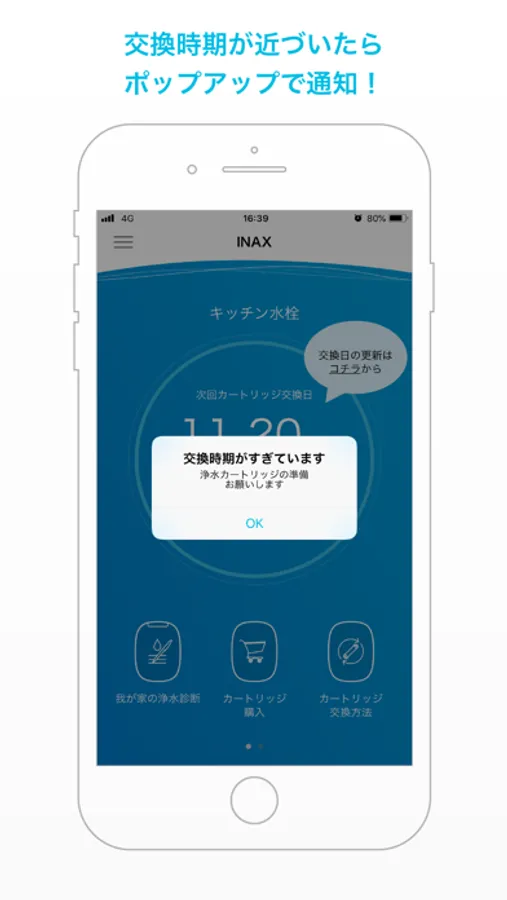 - カートリッジ利用開始日設定をすると、次回カートリッジ交換日を通知します