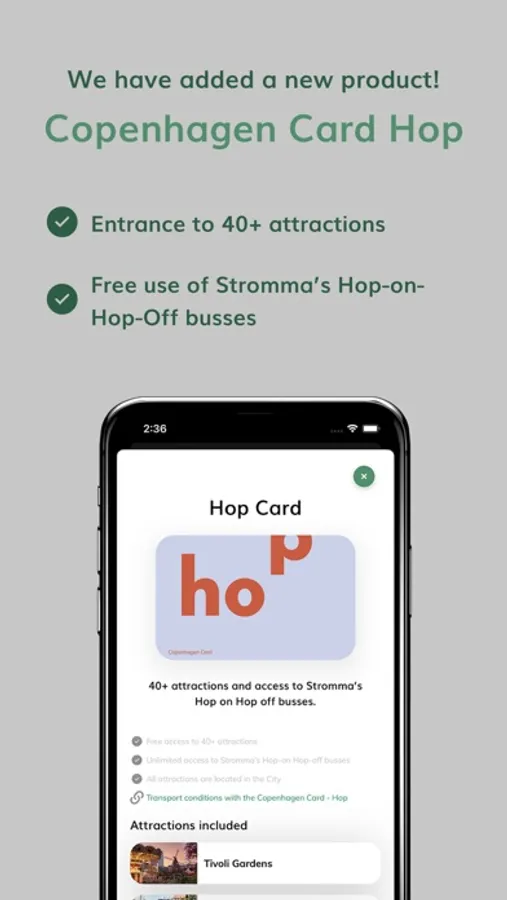 Copenhagen Card is the official sightseeing pass to Copenhagen. Copenhagen Card Discover gives you entrance to 80+ attractions, and free public transportation (train, metro, bus & harbor bus). Copenhagen Card Hop gives you entrance to 40+ attractions in the city centre, and free use of Stromma’s Hop-on-Hop-Off busses.