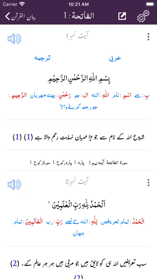 By using this app user can easily understand Koran, Read Quran, book mark ayah, can easily switch to Dark Mode, Night Mode and default mode. User can easily select different themes, font’s families and font’s sizes for Quran words and its translation. There are 3 different modes available in our app simple mode (Mushaf Mode Only Arabic), Arabic and translation mode (Which also include word by word translation), and Tafseer mode. The best feature of this app is Recite koran in audio by a famous Scholar Mishary Al Afasy in Mushaff Mood