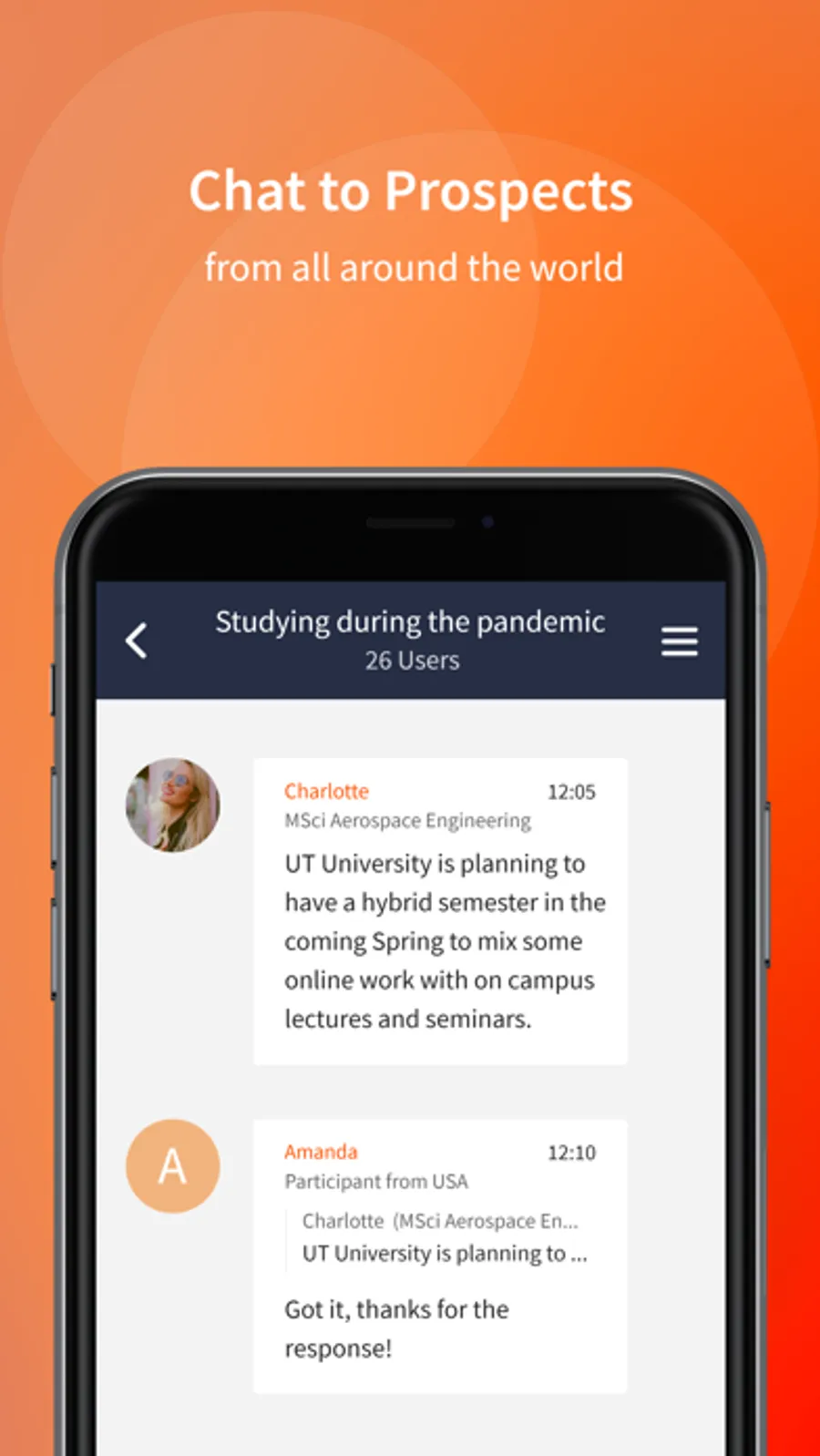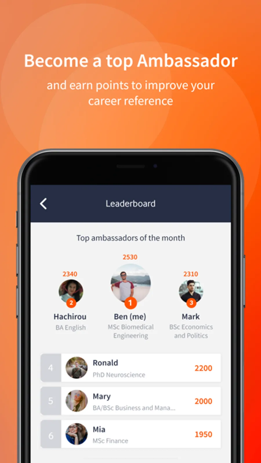The creators' app for student ambassadors, by invitation only. The Ambassador Platform enables you to have conversations and answer commonly-asked questions. Speak to the student ambassador administrator at your institution to get your access code to sign up.