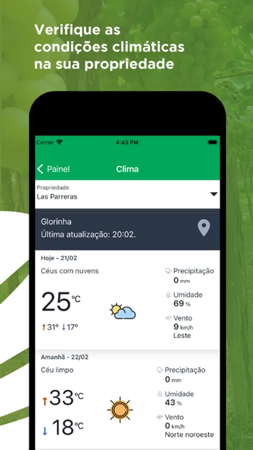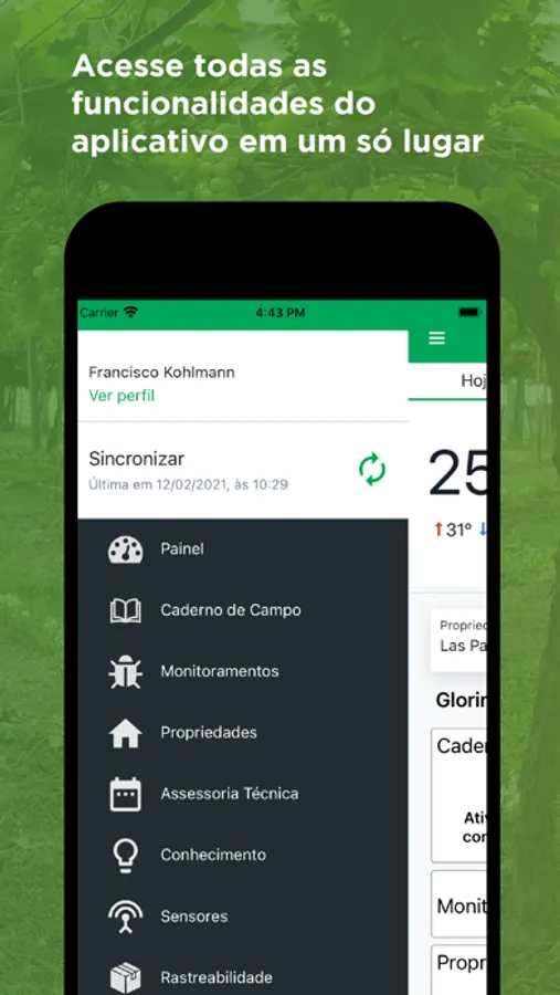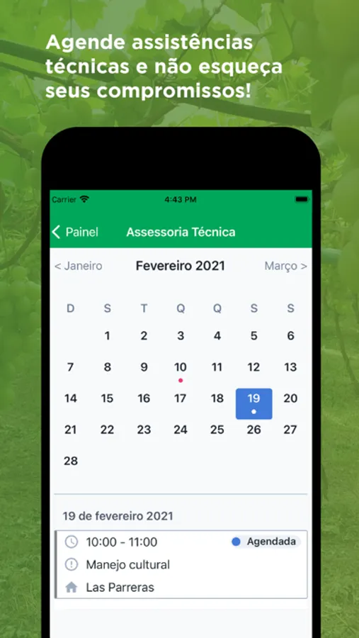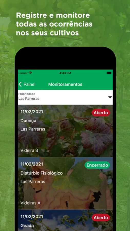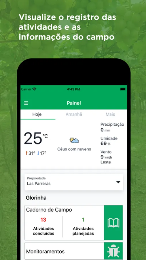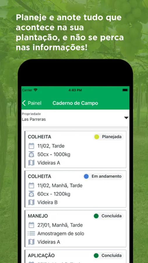 - Controle os manejos, aplicações, colheitas e registro de estimativas;