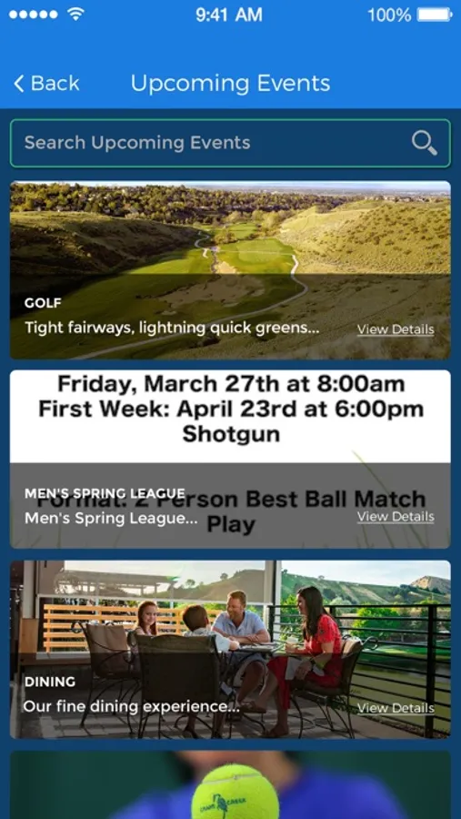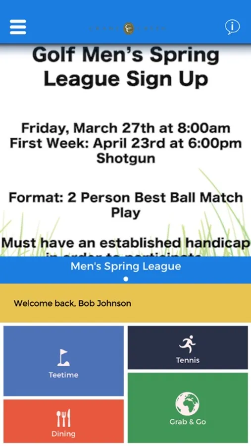 Crane Creek Country Club Mobile App can monitor statements, explore the directory, stay updated on club events, make reservations, and more.