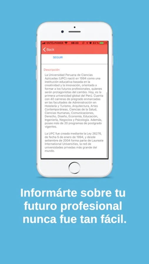 Es una aplicación de orientación vocacional que te ayudará a encontrar la carrera ideal en base a tus talentos y aptitudes, comienza con un sencillo y divertido test en el que podrás ubicar la carrera y universidad más apropiada para ti en un mar de posibilidades.