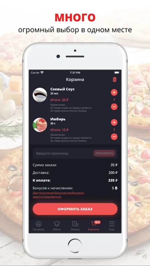 посмотреть меню и совершить онлайн-заказ,