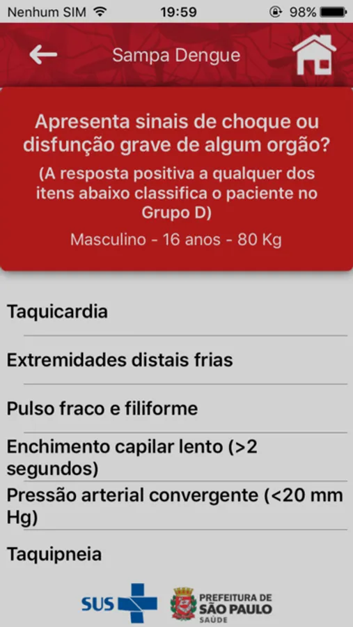 O Sampa Dengue é um aplicativo que tem como o objetivo apoiar Agentes de Saúde no atendimento à pacientes com suspeita de dengue. Ele ajuda a classificar o grupo de risco do paciente e posteriormente demonstra as medidas necessárias a serem tomadas, tal como também os cuidados a serem observados.