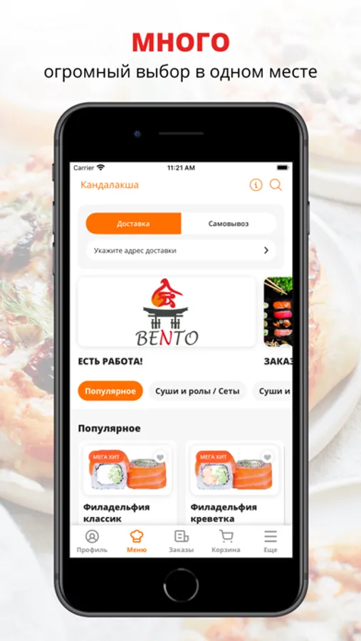 Приложение Бэнто — это удобный способ заказа еды домой или в офис! Мы готовим наши блюда из качественных свежих ингредиентов и доставляем еду в любую точку города - быстро и аккуратно!
