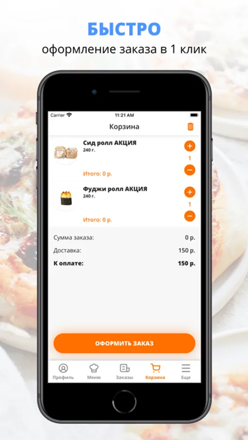 Скачивайте приложение, оформляйте заказ и наслаждайтесь любимой едой, где бы Вы ни были! Приятного аппетита!