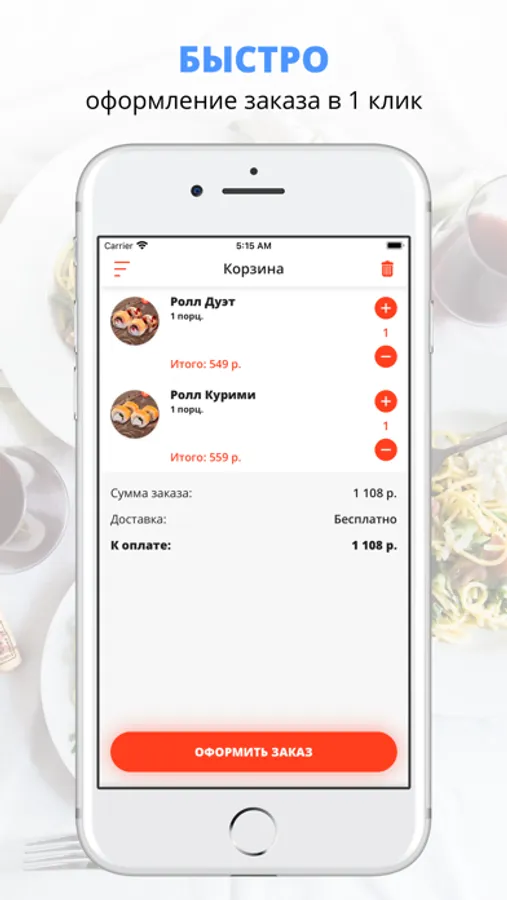 Скачивайте наше приложение, оформляйте заказ и наслаждайтесь любимой едой, где бы Вы ни были! Приятного аппетита!