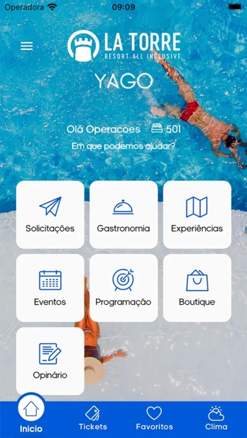 Conheça todas as comodidades para realizar solicitações, reservas de experiências e restaurantes, além de ficar por dentro da nossa programação de lazer, calendário de eventos, e contato com nosso canal de atendimento ao hóspede. Com acesso simplificado e navegação otimizada e dedutiva, você acessa todos os serviços e abre chamados para governança, manutenção, recepção. E mais! Você também envia mensagens personalizadas de aniversário, lua de mel, entre outros.