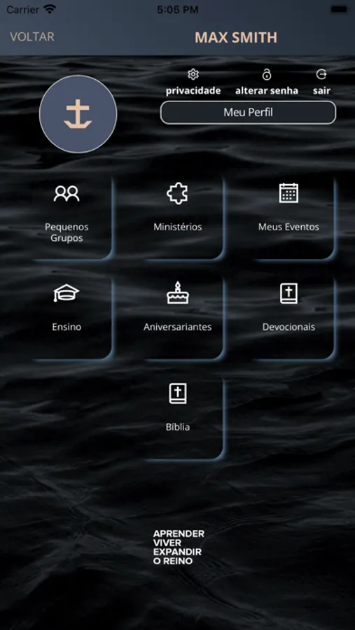 * No item Meu Perfil é possível atualizar seus dados cadastrais na Igreja;