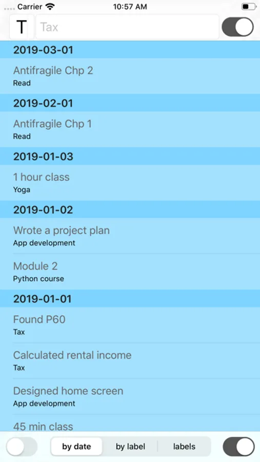 ToDid flips the to-do list on its head, enabling you to quickly and simply record something you've done, label it and view it in date or category order.