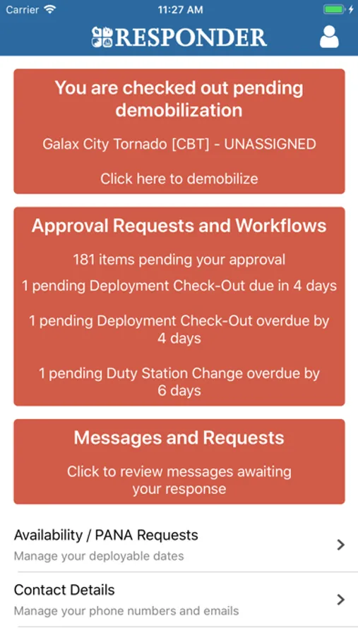 DTS Responder allows FEMA responders to manage their deployments and deployment requests, contact information, availability, and workflows via their mobile device.