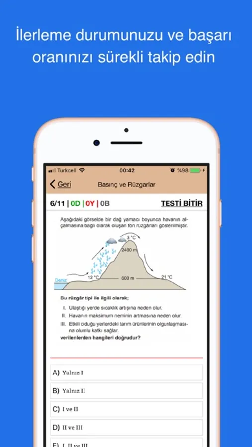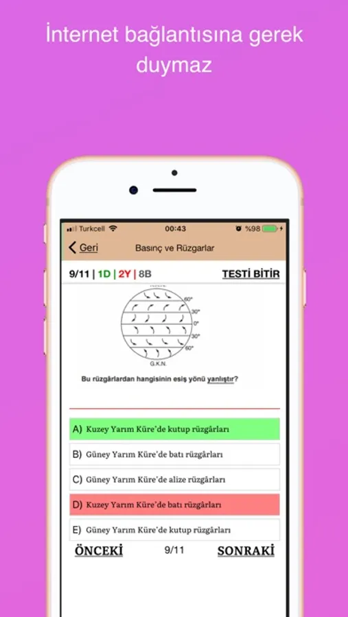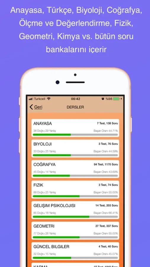 Bu program sayesinde istediğiniz her yerden telefon ve tablet ile internet bağlantısına gerek olmadan soru çözerek kendinizi test edebilirsiniz, 9000den fazla soru içerir, çözdüğünüz sorulara ana sayfadaki çözdüklerim kısmından kolayca erişebilir, dilediğiniz kadar tekrar edebilirsiniz.