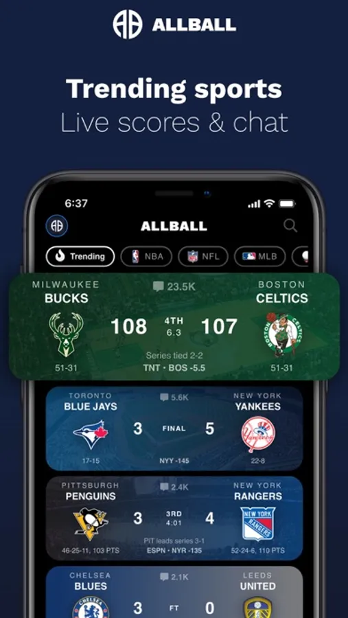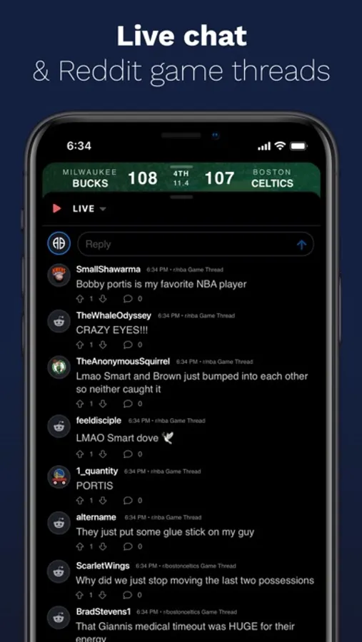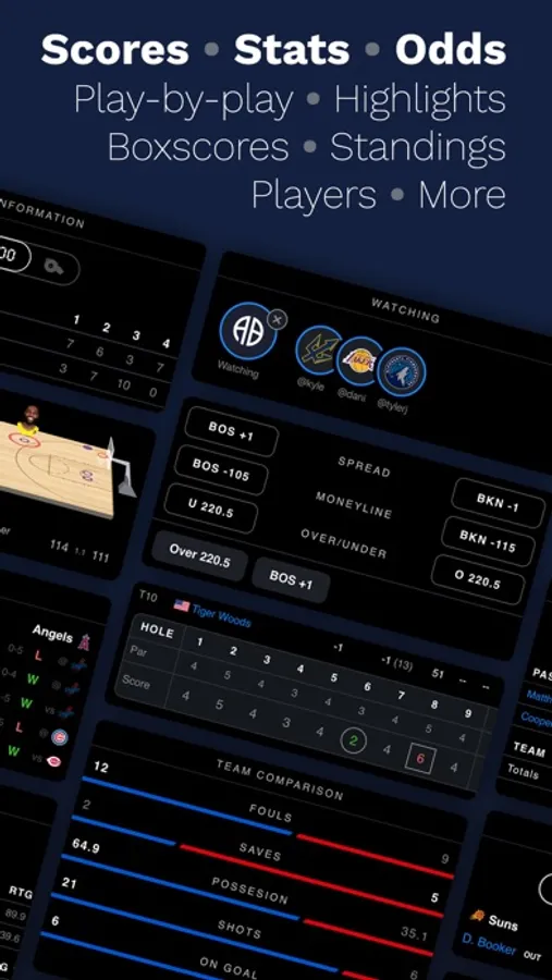 Live scores, stats, and odds, plus live discussions with Reddit threads and real-time chat for NFL football, NBA basketball, MLB baseball, NHL hockey, NCAA football, NCAA basketball, WNBA basketball, English Premier League soccer, La Liga Soccer, PGA golf - and many more!