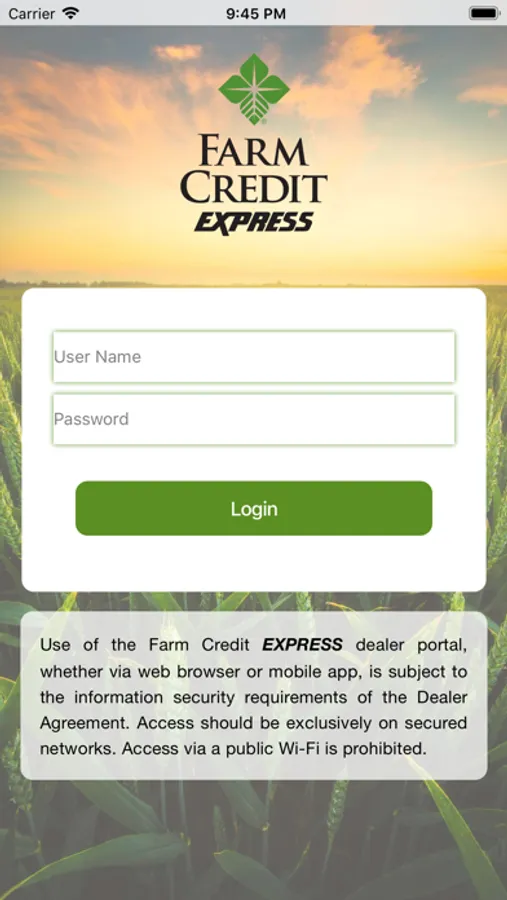 The Farm Credit EXPRESS app provides mobile access for participating dealerships of the Farm Credit EXPRESS equipment financing program.
