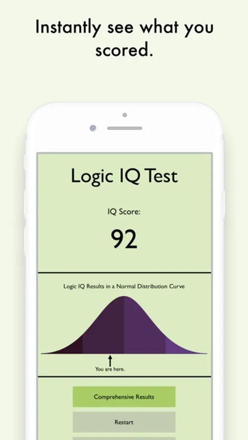 Want to know your IQ Score. This App focuses on Abstract Reasoning area of the IQ test. Complete a fast test to receive an IQ score. You will also be able to access which questions are correct and which are incorrect. Lastly, see where you rank among other participants on a distribution graph. Complete the test several times and average your score amongst the question pool for more accurate results.