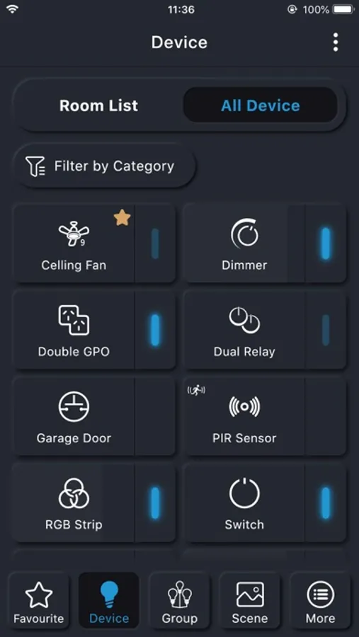 The PIXIE PLUS app allows the user to divide the home into Rooms for fast, fine tuned control and configuration of PIXIE smart home devices and delivers the ability to control the home from anywhere an internet connection is available.