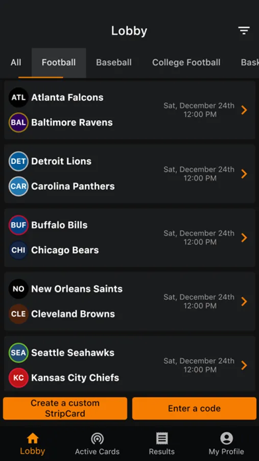 Sporting events are automatically populated and scores are constantly updated. StripCard matches update live throughout the duration of the event so you always know who is currently in the winning slot