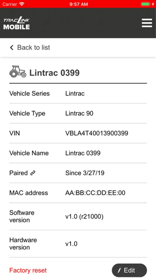 • This app and the associated TracLink Mobile OBD work with Lindner GEOTRAC Series 4, UNITRAC Series 2 and LINTRAC vehicles. For an overview of supported models, visit https://www.lindner-traktoren.at/traclinkmobile