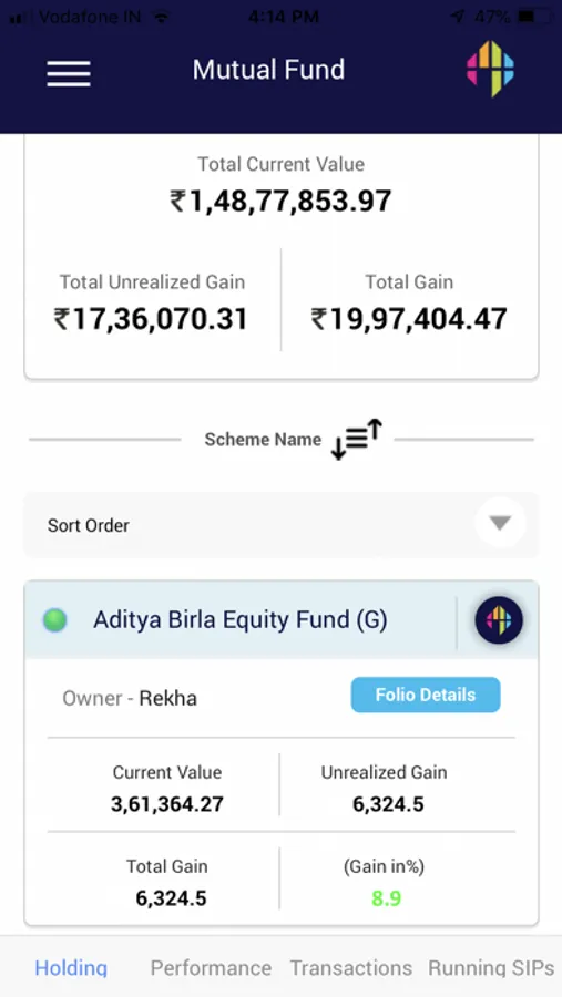 · View details of different assets including mutual funds, insurance, foreign exchange, real estate and liabilities.