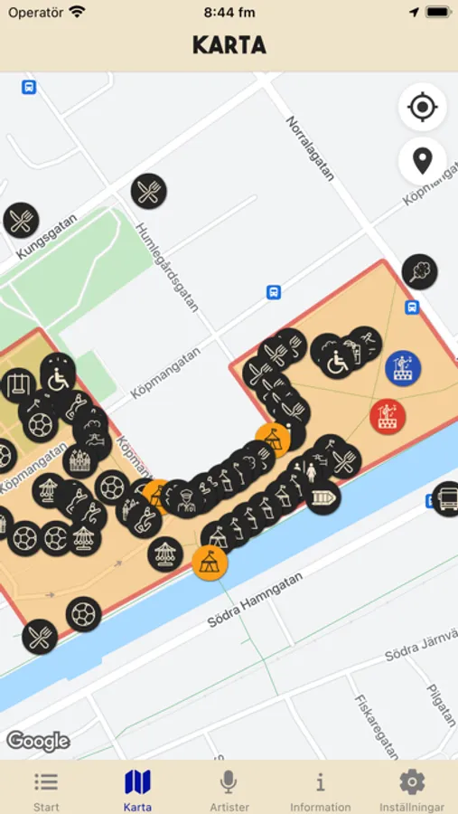 Nyhetsflöde, spelschema och karta över området. Genom appen får du notifieringar om vad som händer på området och ha koll på vilka artister som uppträder när. Via kartan hittar du till matserveringarna, attraktionerna, information och annan service.
