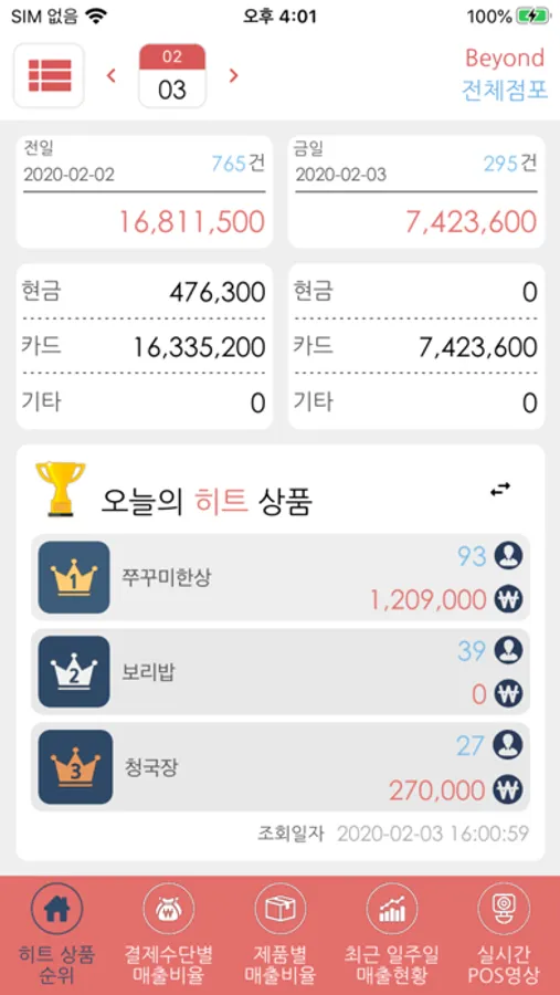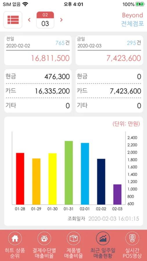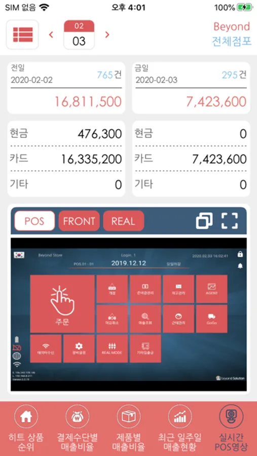 핸드폰/태블릿 기기에서 웹 서비스를 이용하여 태블릿 포스 매출 정보 조회 및 실시간 포스 영상을 확인하는 어플리케이션입니다.