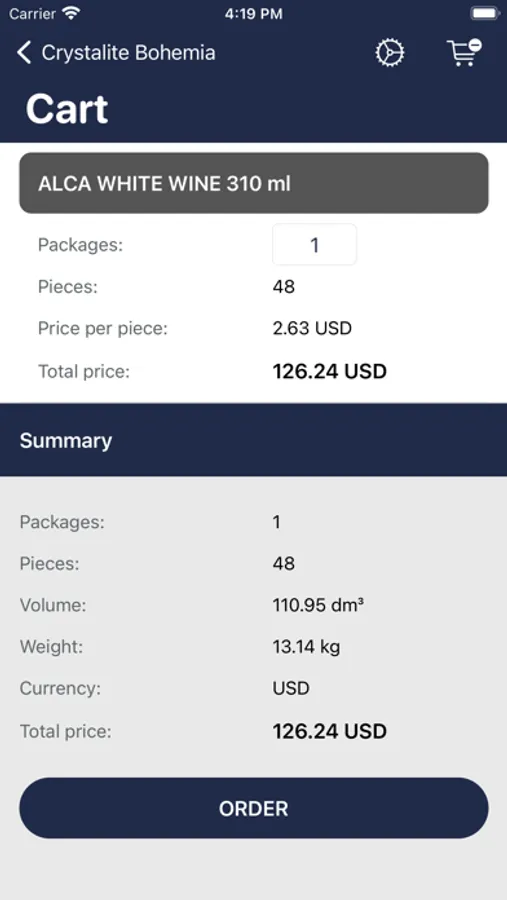 The Crystalite Bohemia application is used to view the product catalog, including photos.