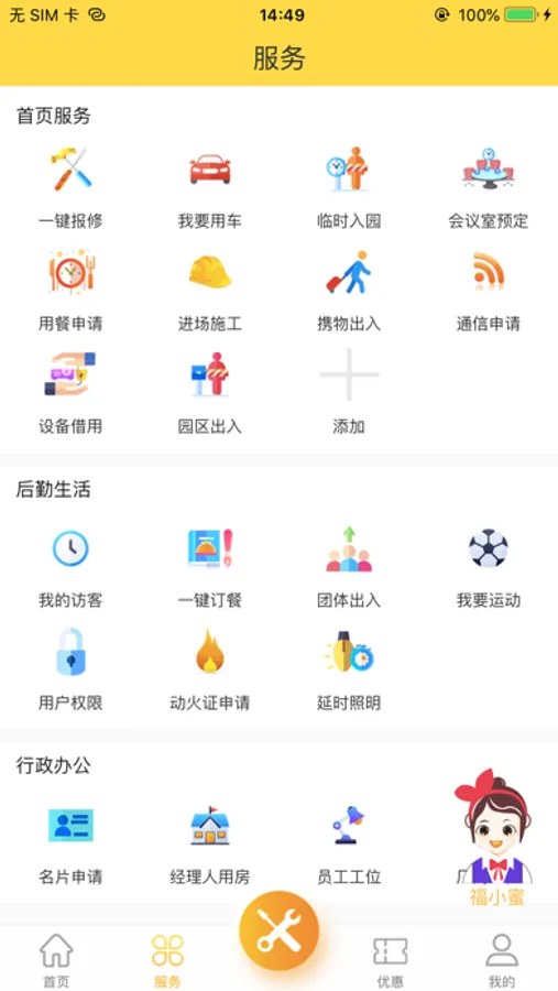 幸福mobile是湖北移动智慧园区应用服务,基于园区行政后勤运营管理以服务员工,提升员工满意度为目标。以提高园区运转效率为方向,运用物联网、大数据等技术手段的信息化建设架,建设涵盖园区生产生活、覆盖人员、设备、空间、物料的调度管理,提供便捷高效后勤服务支撑的现代化园区,让员工轻松享受安全、便捷、幸福的智慧生活及增值服务。